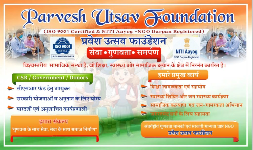 PARVESH UTSAV FOUNDATION is a registered non-profit and non-governmental organisation based in Rajasthan that works in various fields for enhancing communities, promoting citizen participation & developing society.